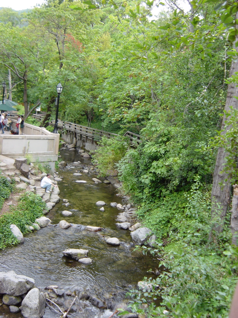 There's a neat little touristy area downtown that reminds me of Mountain View's Castro district. Lots of food places, antiques, books, and 3 bead shops. We ate at Pasta Pianni? Bryan had gemelli, and I had bruschetta and asparagus. After, we went back to our room, fireplace, jacuzzi and all that. We even have 2 rubber duckies: a purple and a yellow.
